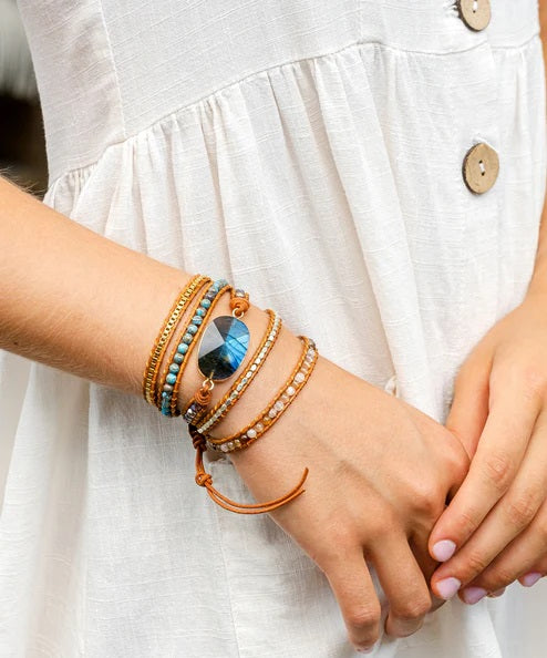 Howlite, Turquoise and Hematite Crystal Bracelet